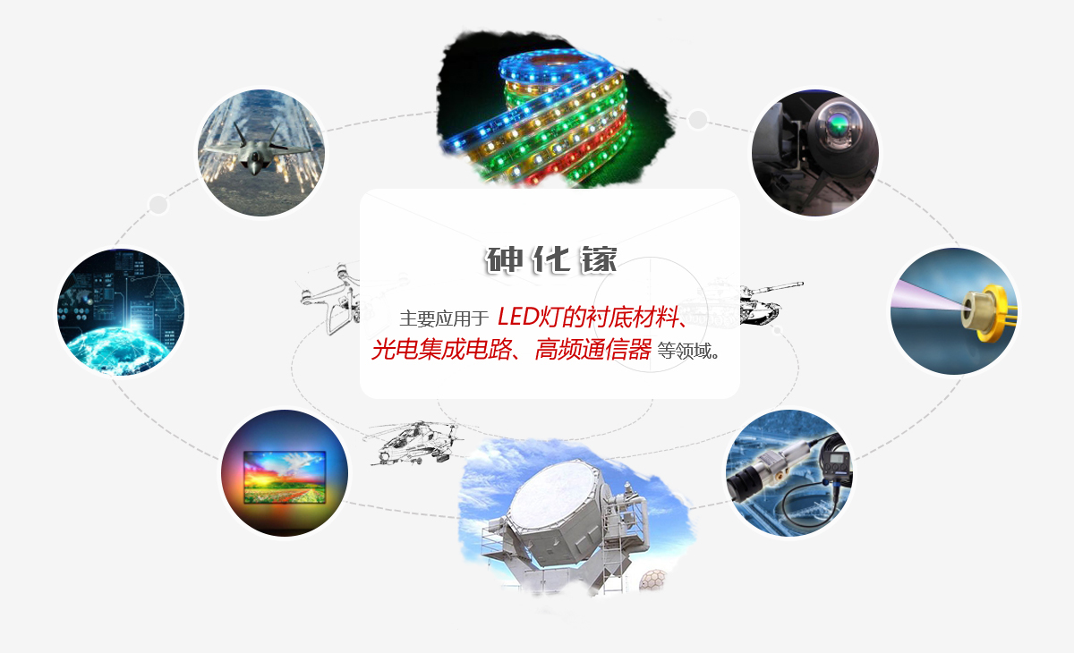 云南鍺業(yè)生產(chǎn)的2-6英寸半導(dǎo)體級(jí)以及半絕緣體砷化鎵晶體和襯底被廣泛應(yīng)用于納米級(jí)半導(dǎo)體集成電路以及LED通用照明領(lǐng)域。 此外,公司還成功投產(chǎn)了具有國際先進(jìn)水平的2-4英寸磷化銦襯底生產(chǎn)線。產(chǎn)品被廣泛應(yīng)用于微波振蕩器與放大器、光纖通訊率放大器等領(lǐng)域。